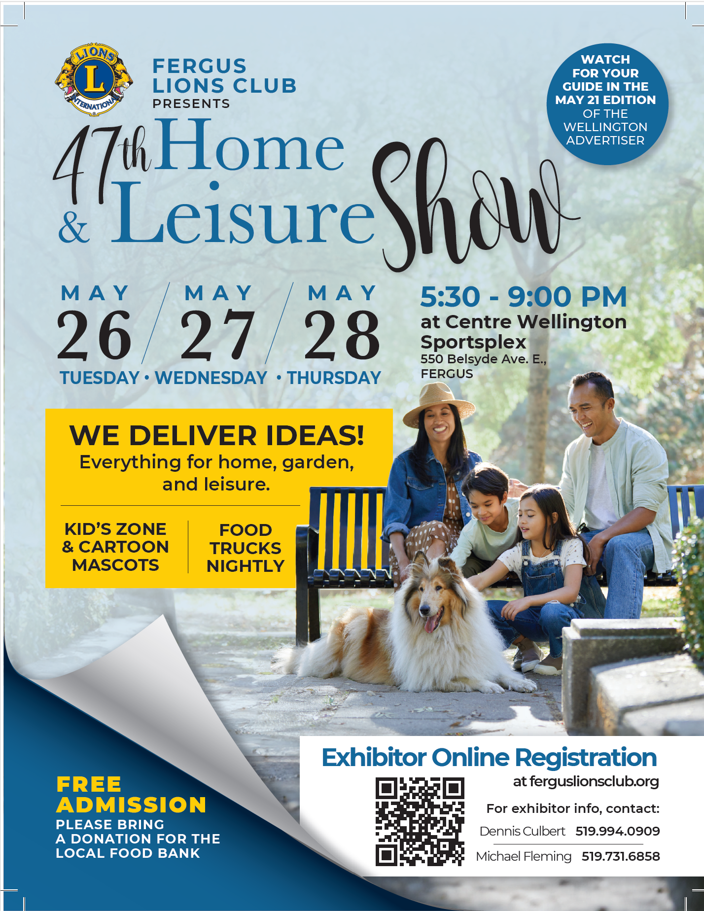 The Fergus Lions Club thanks you for making our 46th Annual Home & Leisure Show a success. Your support helps us continue serving Fergus and Centre Wellington. See you next year!