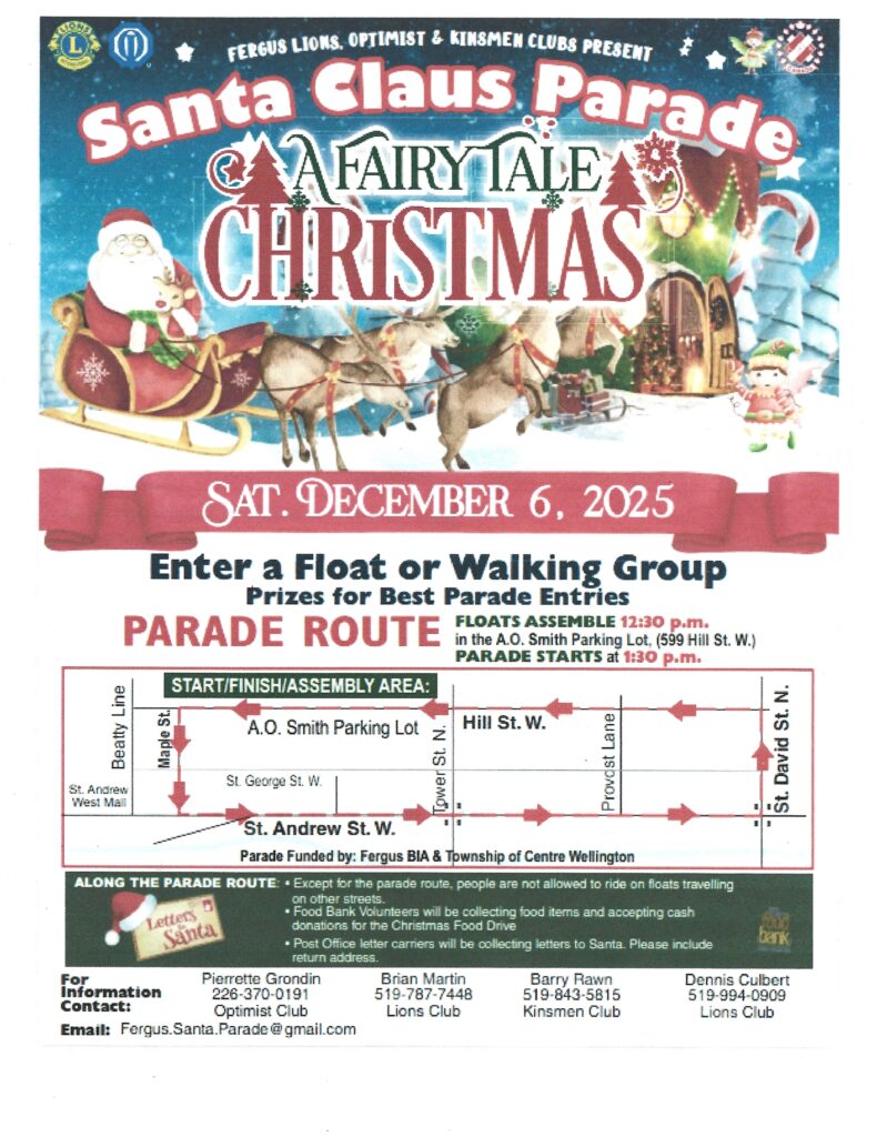 On behalf of the Fergus Lions, Optimist & Kinsmen clubs, we sincerely thank all the volunteers, sponsors, participants, and everyone who joined us for the Fergus Santa Claus Parade on December 6, 2025.
